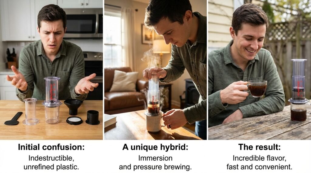 When I got home and unpacked the AeroPress, I was even more confused. It felt indestructible, made of high-grade, heat-resistant plastic, but it possessed absolutely zero aesthetic elegance. It wasn’t beautiful glass or polished stainless steel.