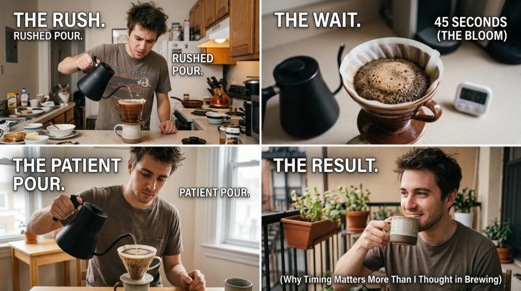 This short window of time allows all the defensive gas to escape. This single, free adjustment is exactly (Why Timing Matters More Than I Thought in Brewing). When I finally resume my pour, the water evenly saturates the grounds, extracting a deep, rich, perfectly balanced flavor.