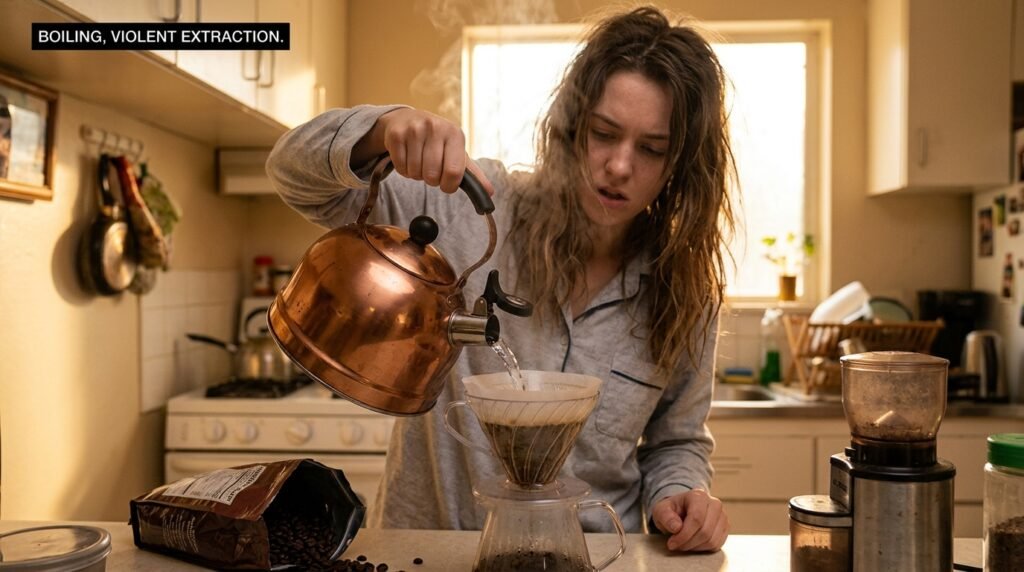 When you blast those delicate compounds with 212-degree Fahrenheit (100-degree Celsius) water, you commit culinary arson. You instantly scorch the oils. You literally burn the sweetness away before it ever has a chance to drip into your mug, leaving behind a harsh, carbonized, bitter aftertaste.