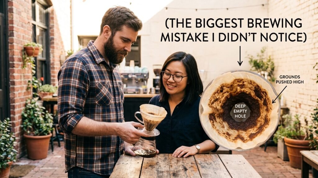 I had absolutely no idea that this specific crater shape was the exact reason my coffee tasted dry and astringent. Failing to read the physical evidence left behind in the filter was undeniably (The Biggest Brewing Mistake I Didn’t Notice), because the shape of the coffee bed tells you everything you need to know about the extraction.