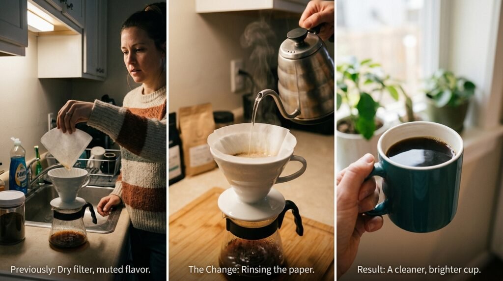 Washing away the paper taste before brewing was the ultimate final touch, perfectly illustrating (What I Changed to Improve My Coffee Instantly). By creating an absolutely blank, flavorless canvas, the true identity of the coffee was finally allowed to dominate the cup.